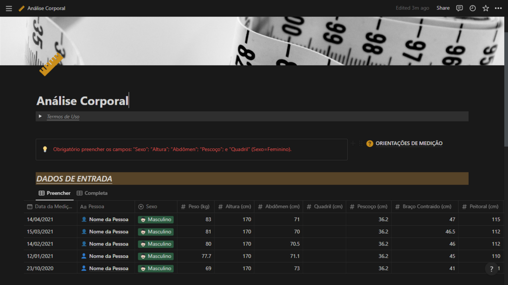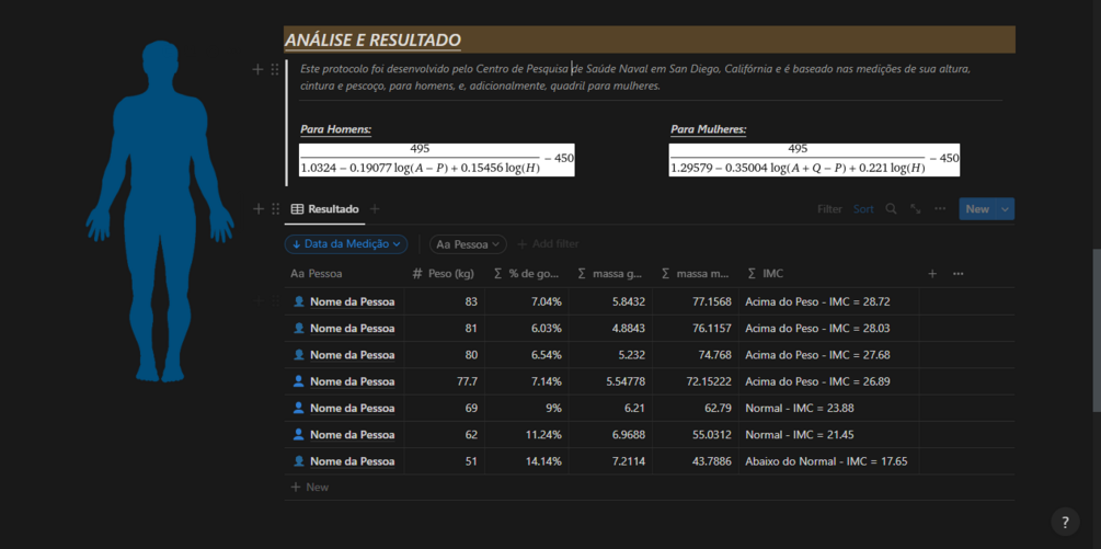 Template do Notion (PT-BR) para análise de medidas corporais