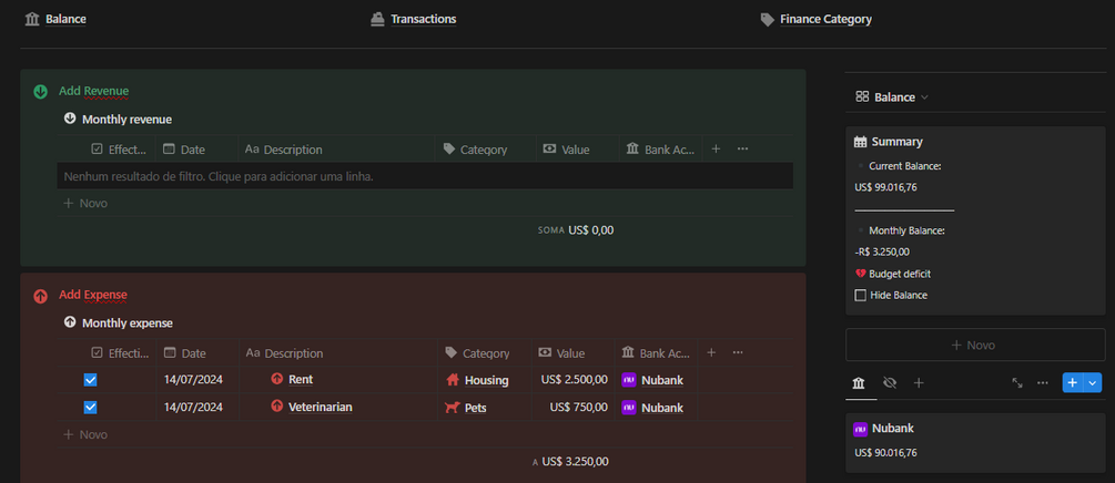 Notion Template for Expense and Revenue Tracking