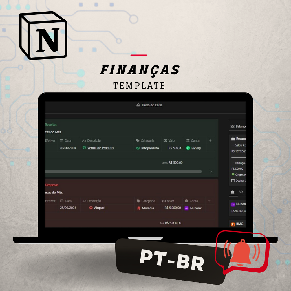 Template do Notion (PT-BR) para controle de gastos e receitas